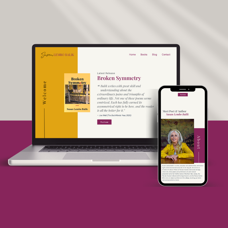 Susan Lembo Balik is a New Jersey–based poet who debuted her first collection, Broken Symmetry, in 2023. As she prepared for a small book tour, hosting poetry readings at local libraries and independent bookshops, she needed a simple, thoughtful digital presence to establish credibility and support book sales.